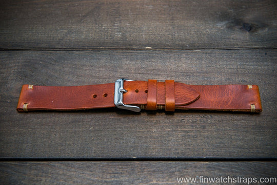 The watch strap is made of the finest Badalassi Carlo leather from Italy. The watch strap has a unique rustic look and deep color. The leather gets beautiful patina with the time. Color: Olmo, pull-up.