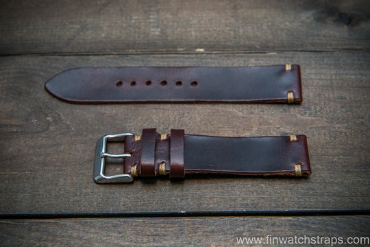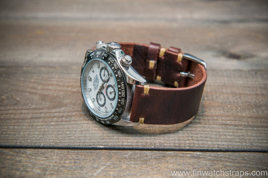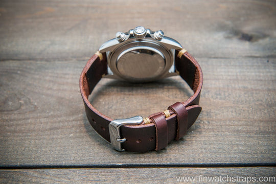 The watch strap is made of the finest Badalassi Carlo leather from Italy. The watch strap has a unique rustic look and deep color. The leather gets beautiful patina with the time. Color: Tobacco, pull-up.