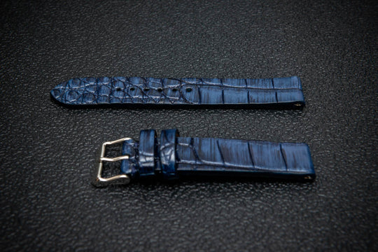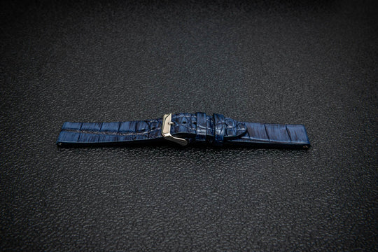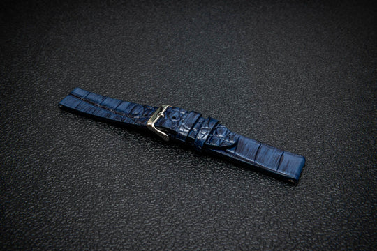 The Sapphire Night Alligator Leather Watch Strap brings timeless elegance with a modern edge. Its deep sapphire-blue tone highlights the natural scale pattern of genuine alligator leather, giving your watch a refined, striking look. This shade makes it an ideal match for stainless steel and platinum cases, as well as a bold contrast for vintage timepieces.