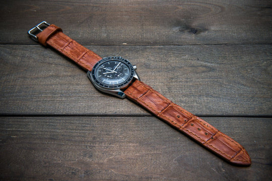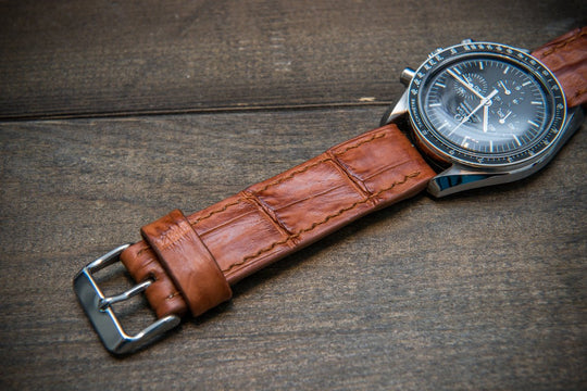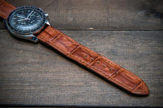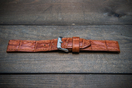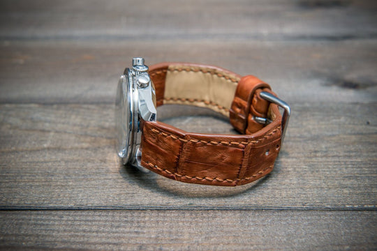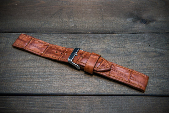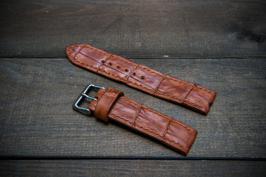 A handmade genuine alligator leather watch strap is made to the highest standards. Cognac matte color.
