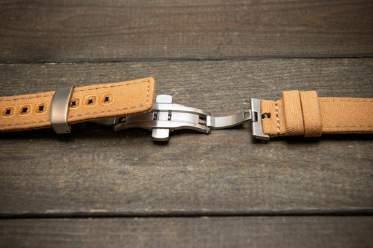 Army premium canvas watch strap, canvas watch band. Handmade in Finland - 19 mm, 20 mm, 21 mm, 22 mm. With a deployment clasp.