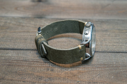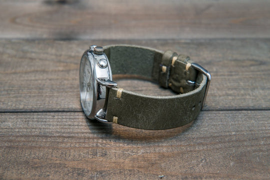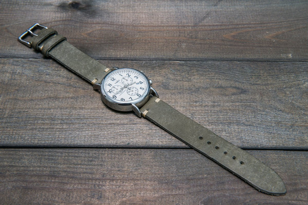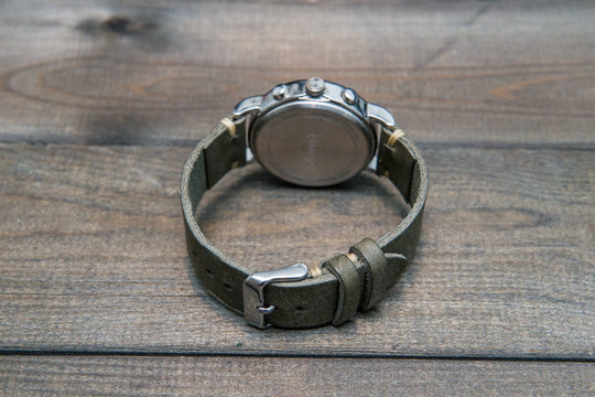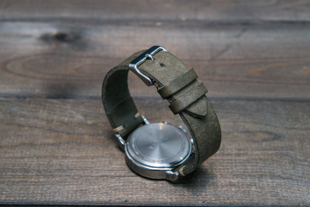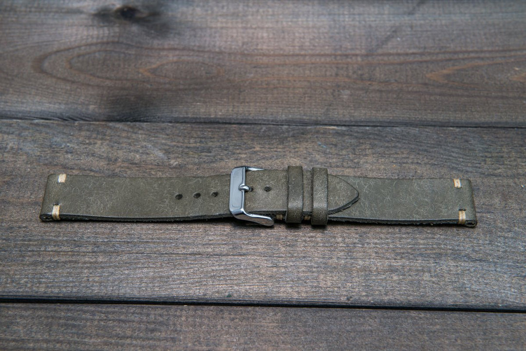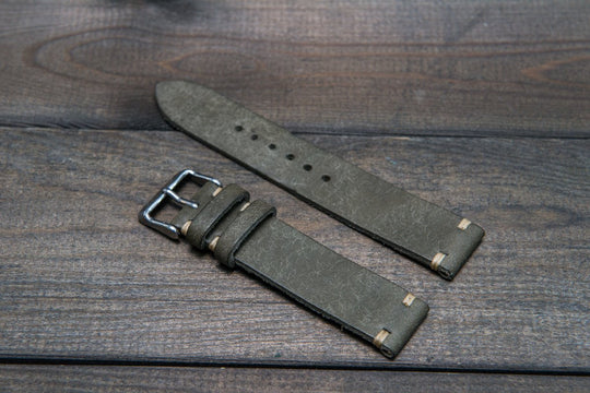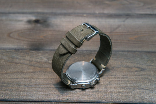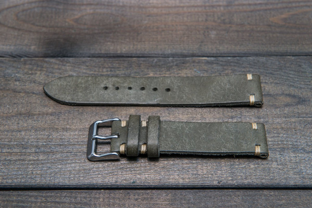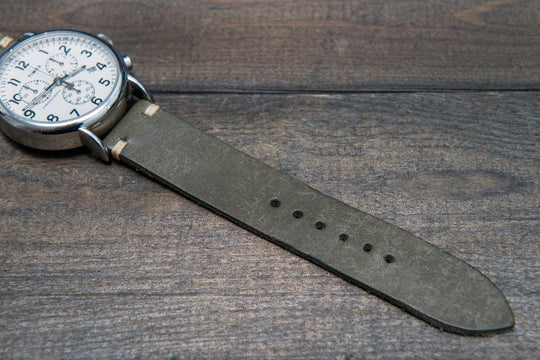 The watch strap is made of the finest Badalassi Carlo leather from Italy. The watch strap has a unique rustic look and deep color. The leather gets beautiful patina with the time. Color: Pueblo Grigio.