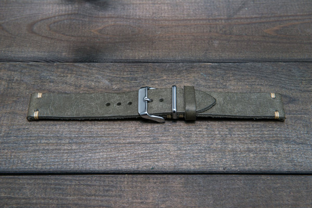 The watch strap is made of the finest Badalassi Carlo leather from Italy. The watch strap has a unique rustic look and deep color. The leather gets beautiful patina with the time. Color: Pueblo Grigio.