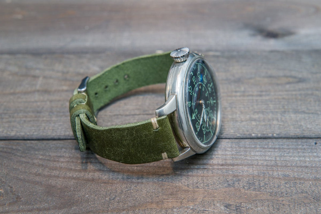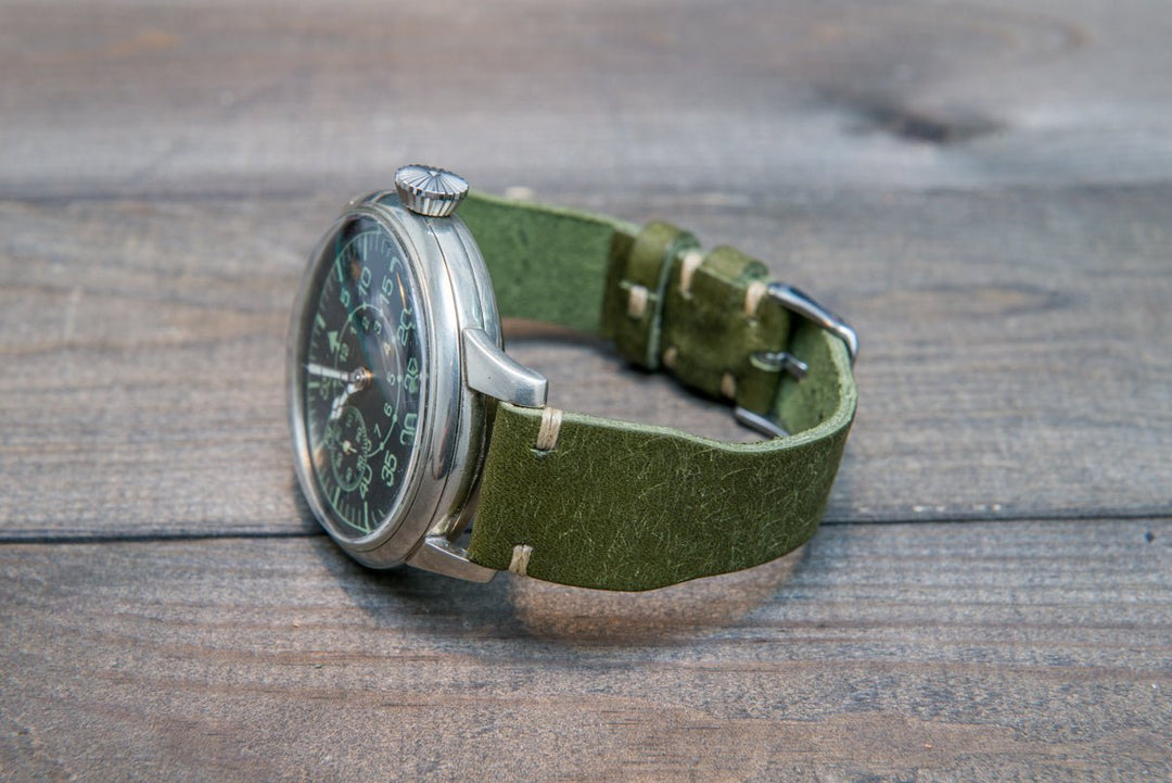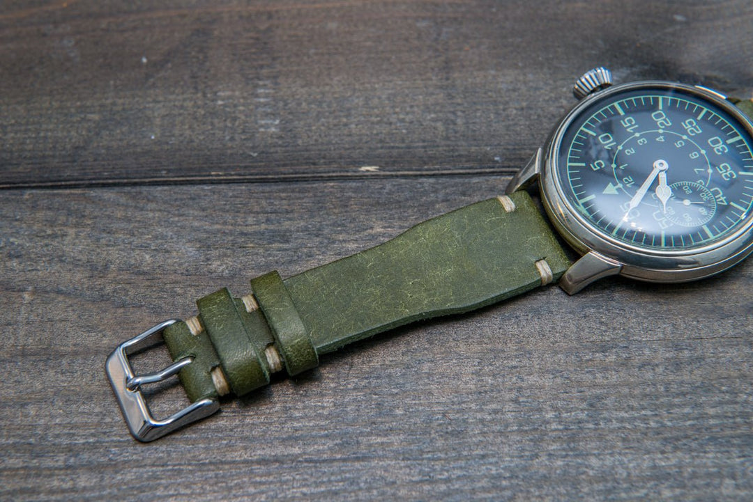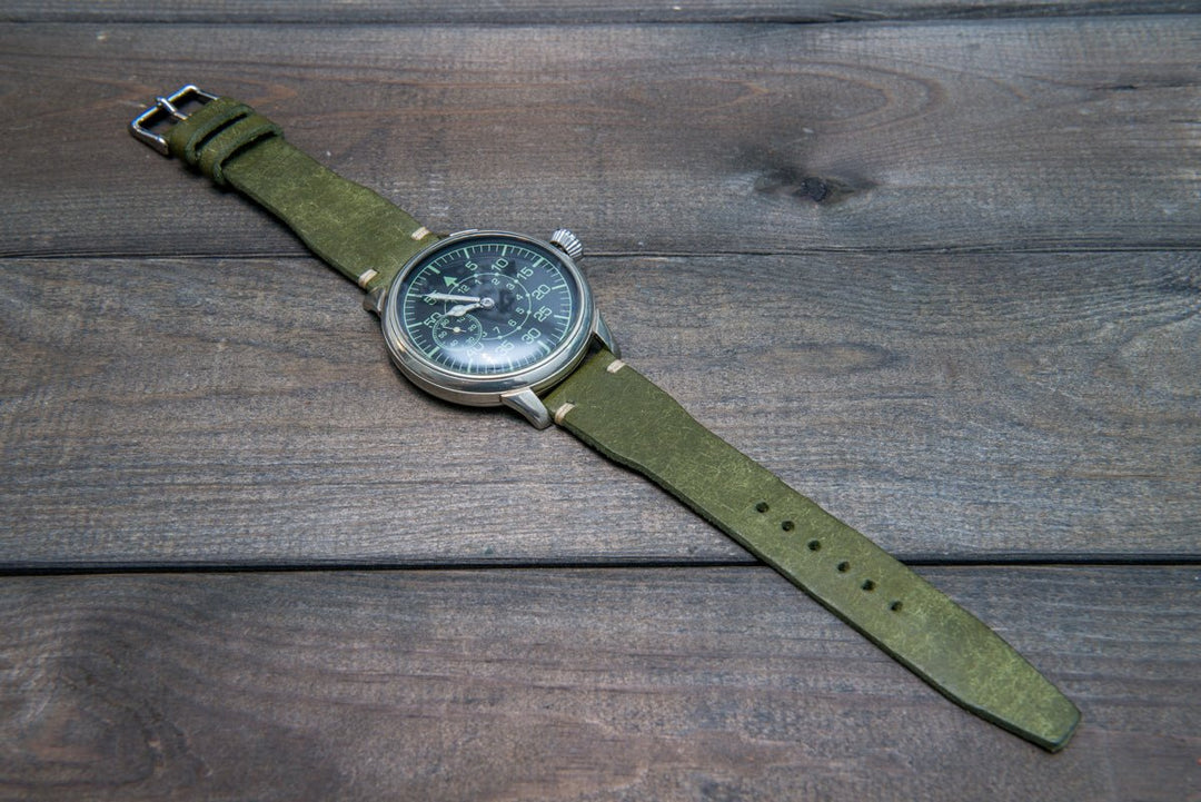 Pilot model watch band. Aviator military style Badalassi Carlo (Italy) Leather Watch Band. Olive color.