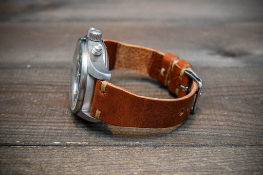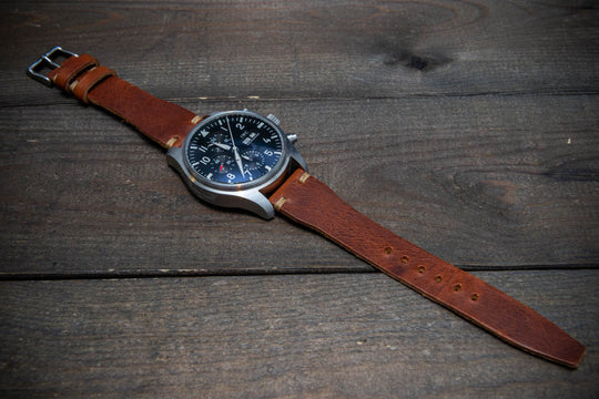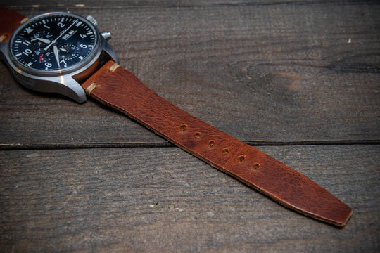 Pilot model watch band. Aviator military style Badalassi Carlo (Italy) Leather Watch Band, Cognac waxed.
