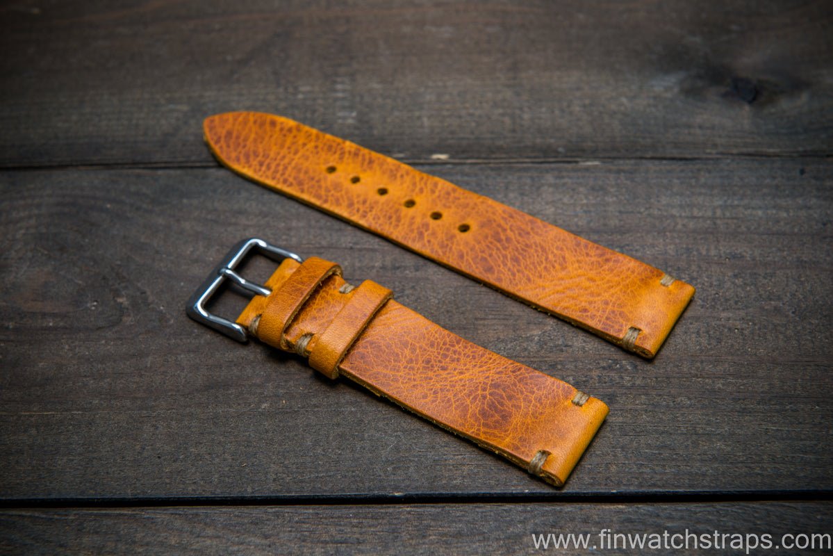 The watch strap is made of the finest Badalassi Carlo leather from Italy. The watch strap has a unique rustic look and deep color. The leather gets beautiful patina with the time. Color: Napoli (light yellowish brown, pull-up).