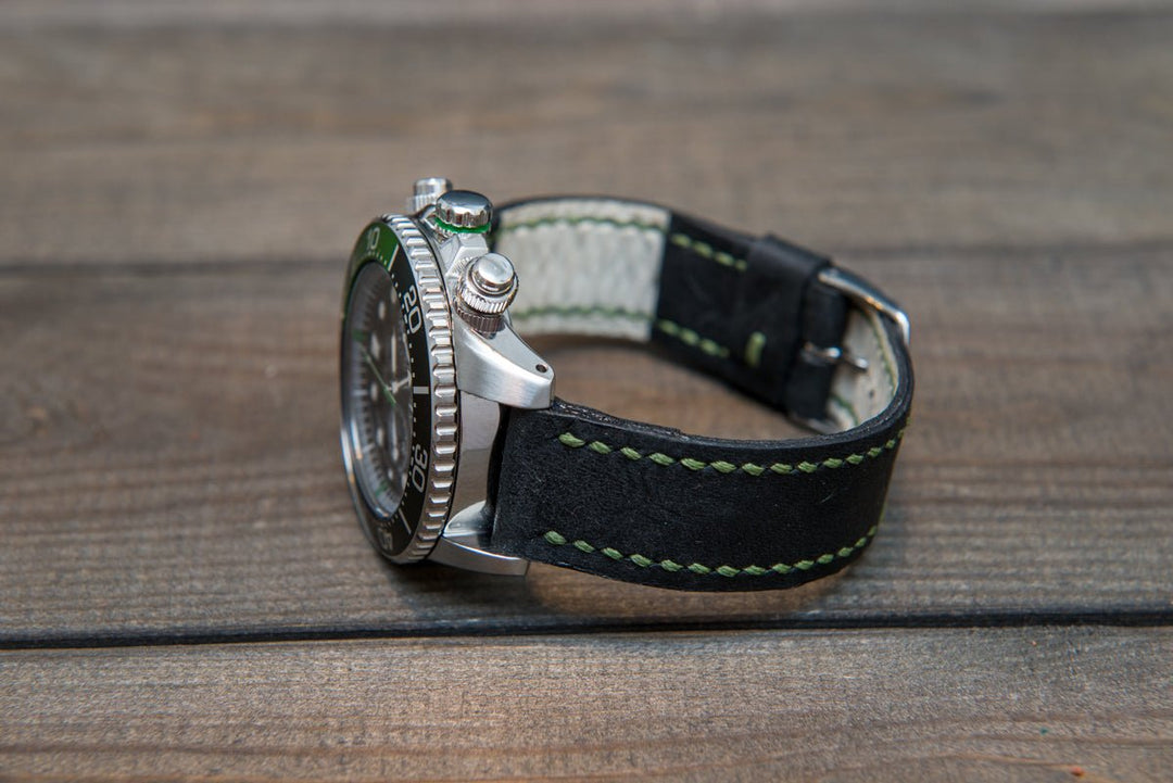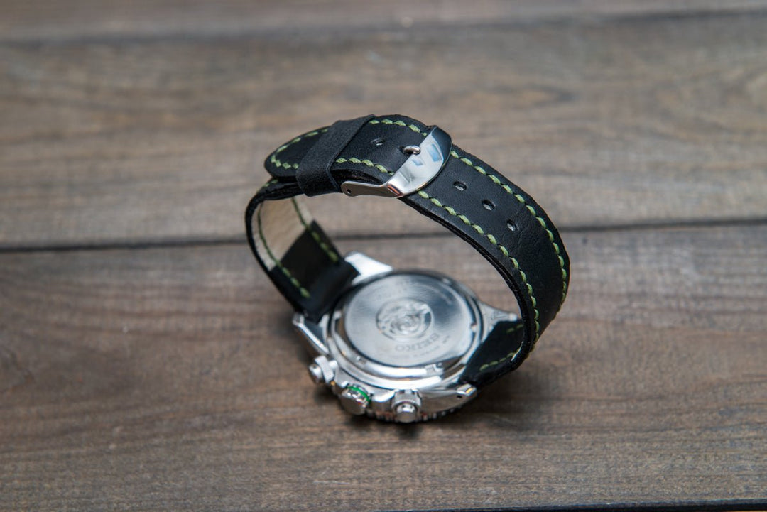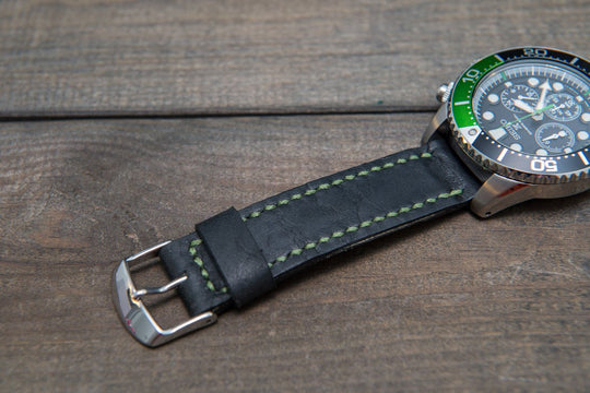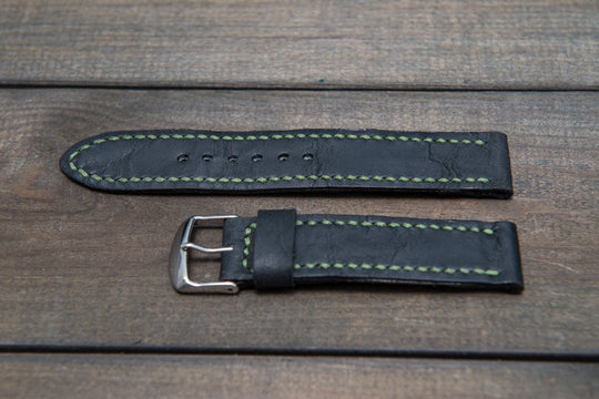 Black Horween leather watch strap, hand stitched, handmade in Finland - 18mm, 19 mm, 20mm, 21 mm, 22mm, 23 mm, 24mm, 25 mm, 26 mm.