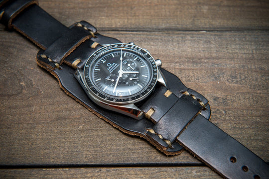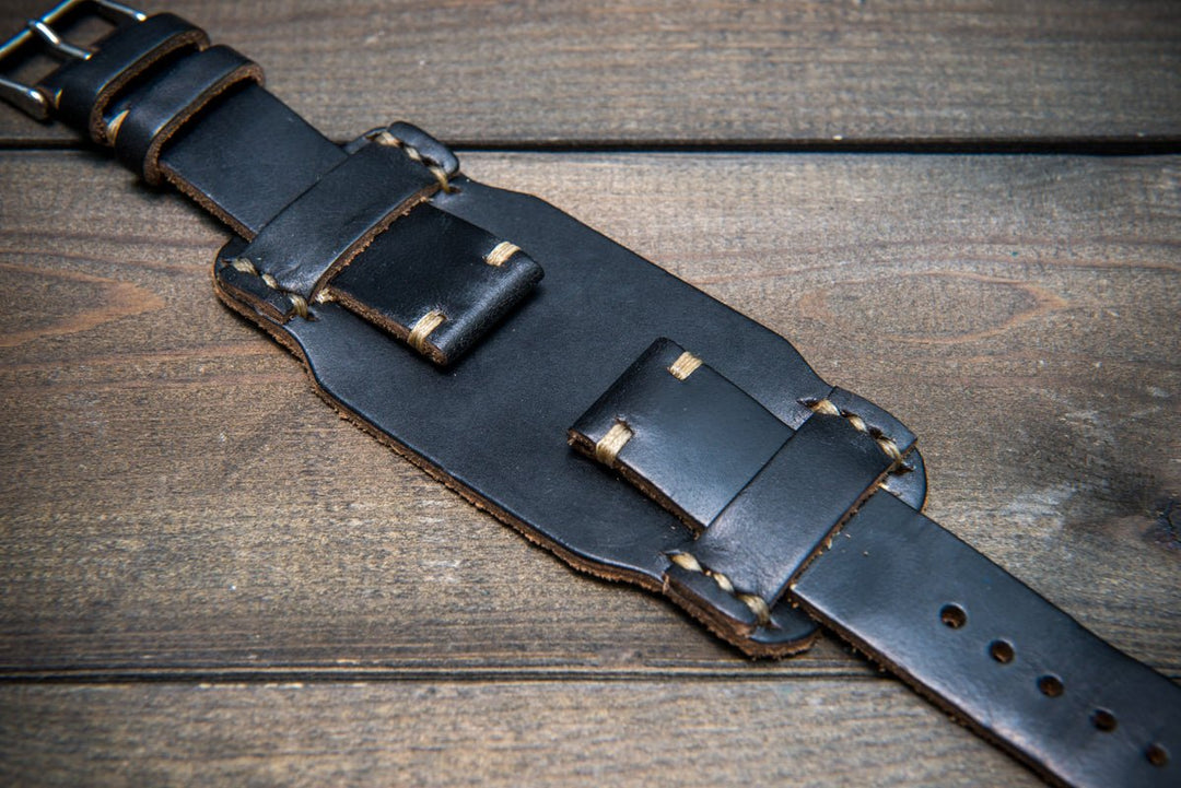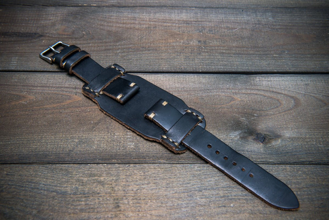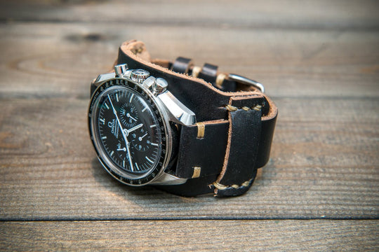Bund-style Leather Watch Strap, Aviator model, Horween Black Chromexcel