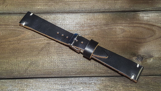 Leather watch strap, Horween Leather Watch Band, Black Chromexcel, Handmade in Finland. Sizing: 26-22mm, 25 mm-22mm, 24-20 mm, 22-18 mm, 20-16 mm, 24-22mm, 22-20 mm, 20-18 mm.
