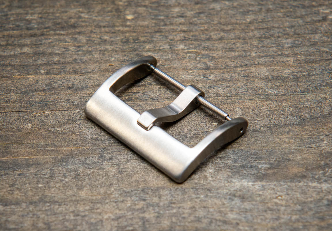 Panerai style buckle. Available in stainless steel polished and matte silver, black and matte gold metals.