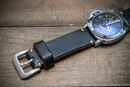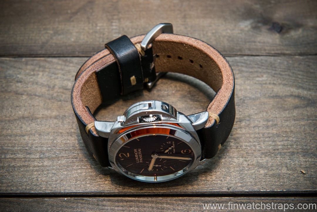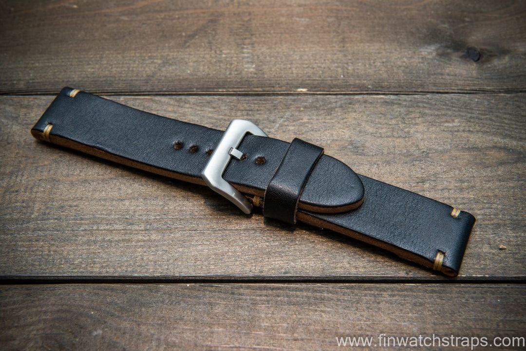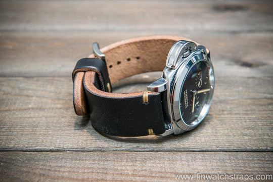 Bridle backs bull leather watch strap 5-6 mm thick, black, handmade in Finland - 16-26mm