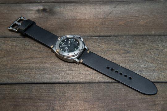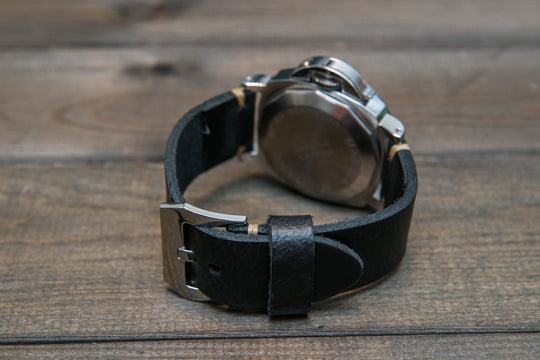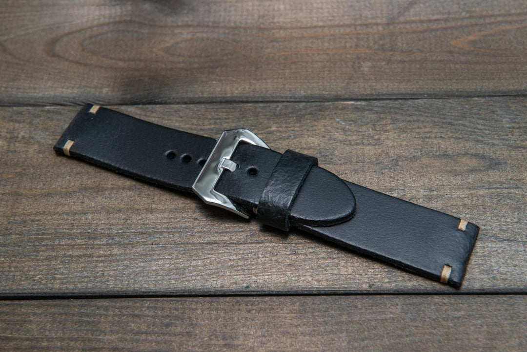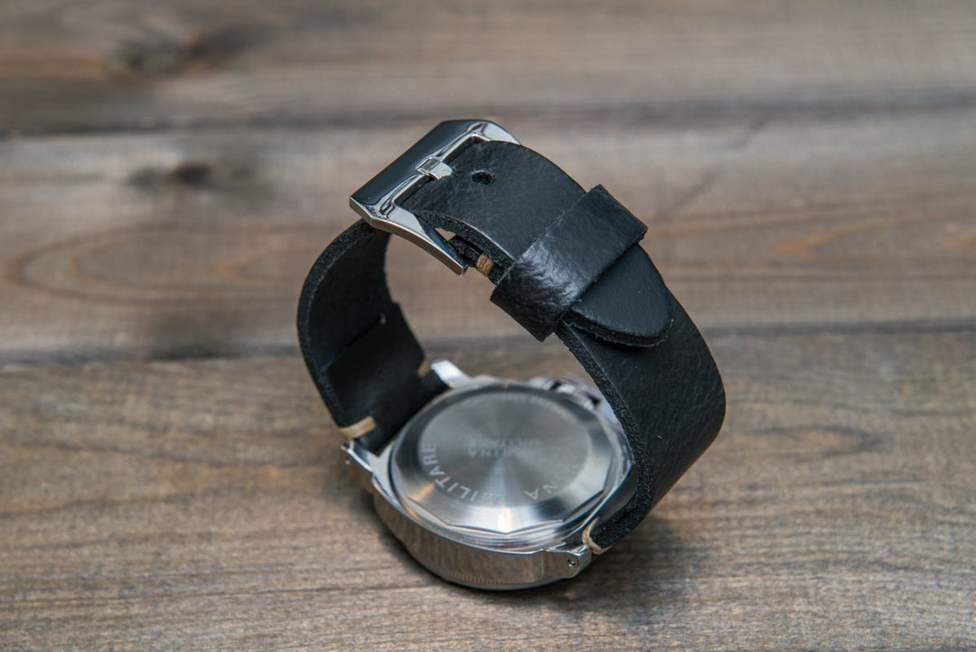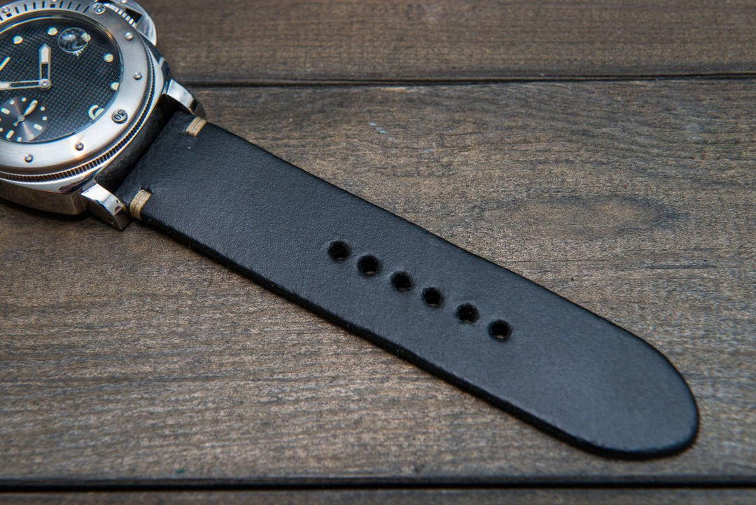 Italian leather watch band, vintage leather watch strap. Color: Black, matte. The leather is 4 mm thick and non stretchy, fits perfectly large and heavy watches.