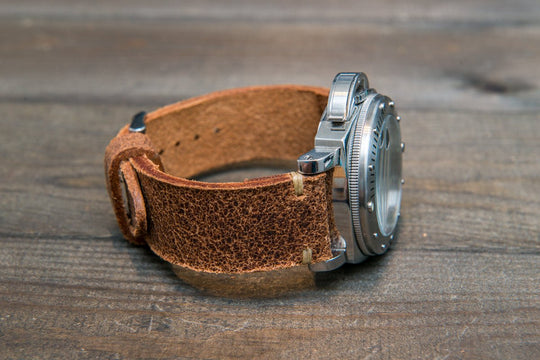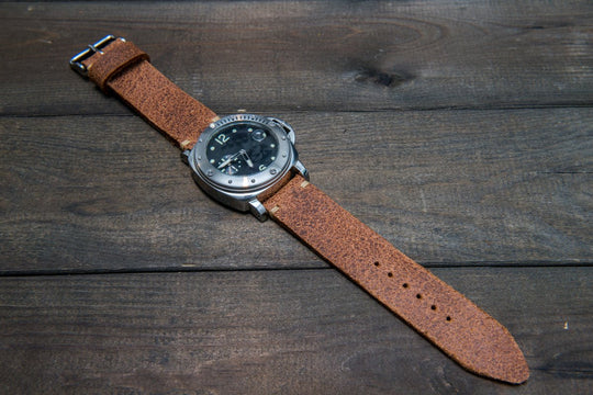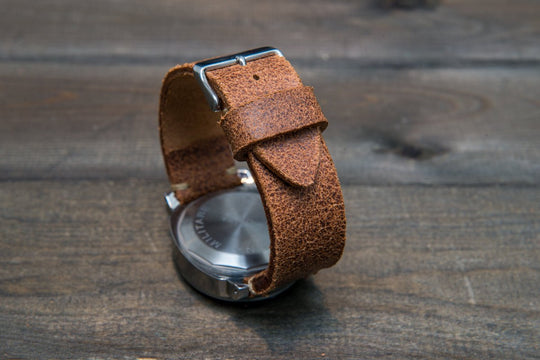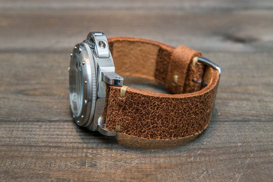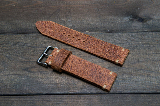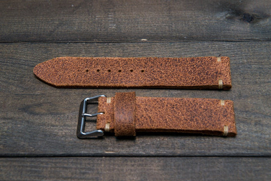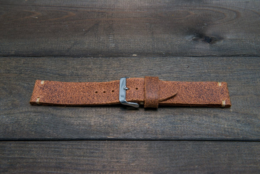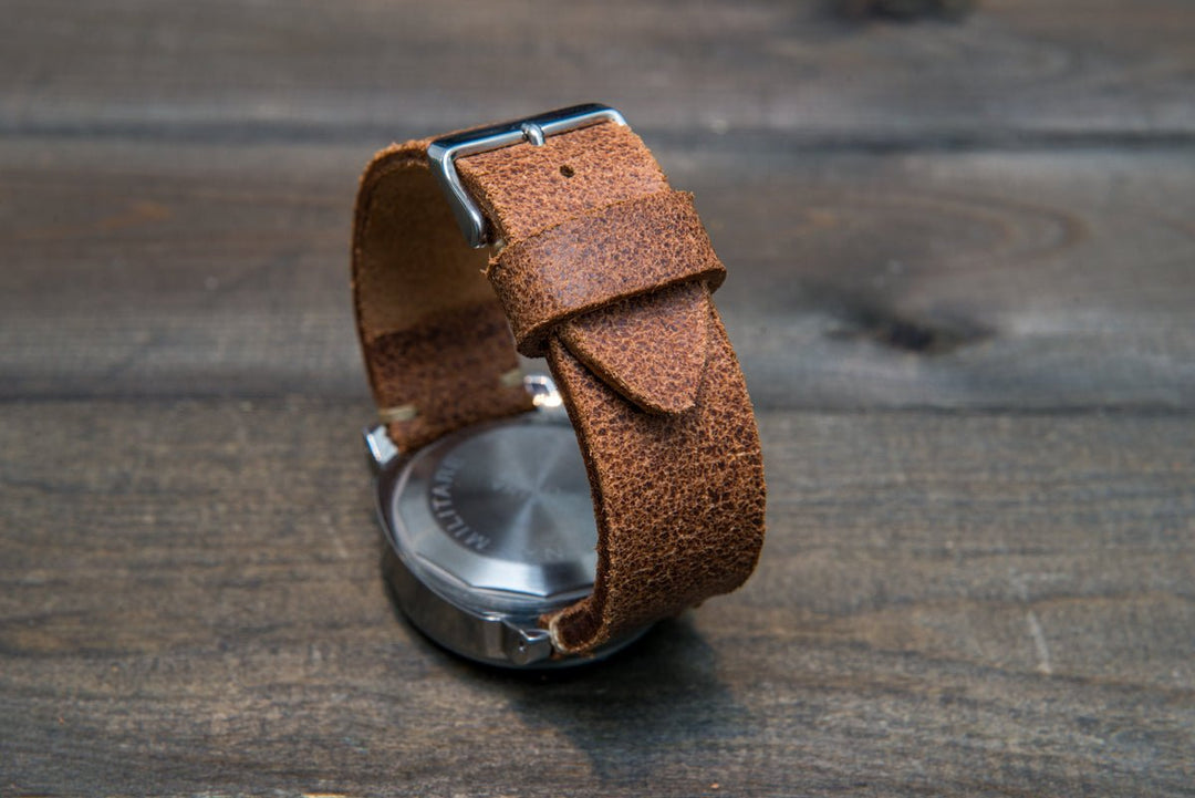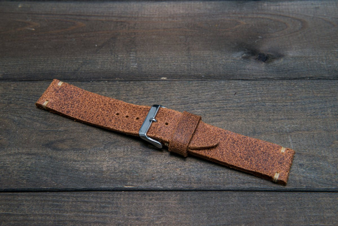 Italian bull leather watch strap 4 mm thick, Rustic Cognac Oily , handmade in Finland - 16mm, 17 mm, 18mm, 19 mm, 20mm, 21mm, 22mm, 23 mm, 24mm, 25 mm, 26 mm.