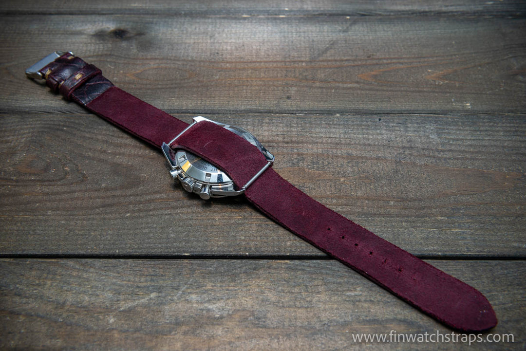 Crazy Cow Burgundy, vegetable tanned suede leather, UK. Handmade in Finland.