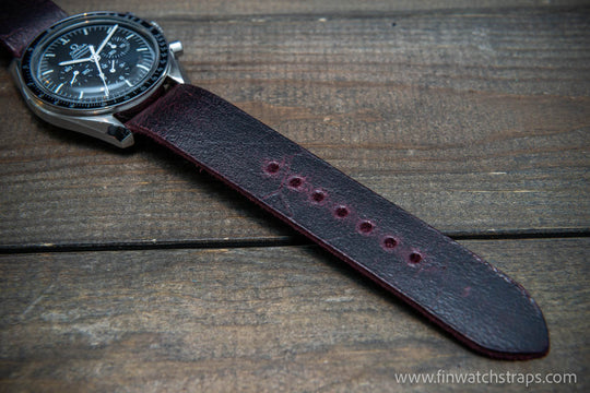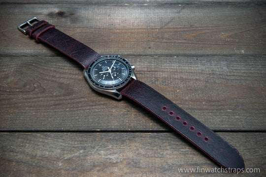 One-piece military watch band, watch strap, Crazy Cow Burgundy