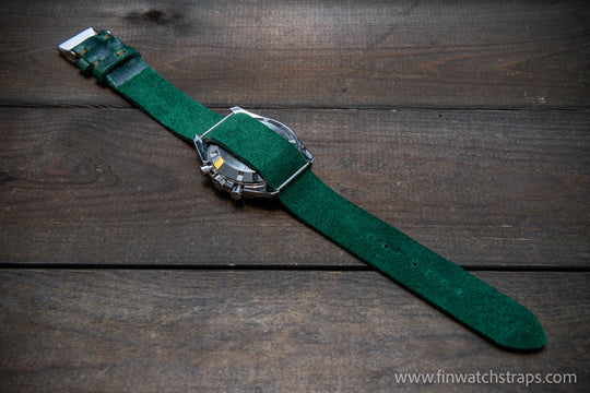 Suede, Crazy Cow Emerald Green, waxed vegetable tanned leather, UK. Handmade in Finland.