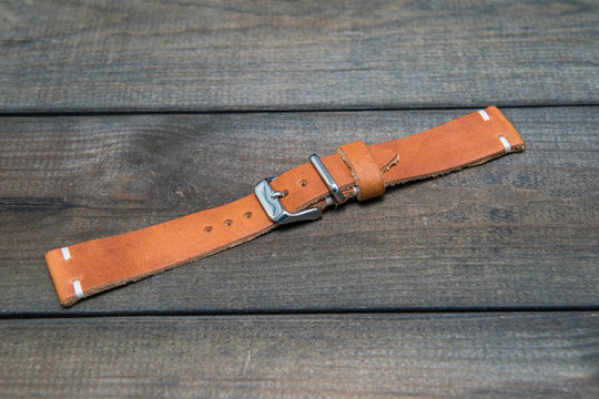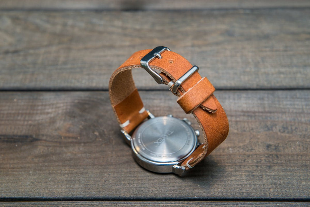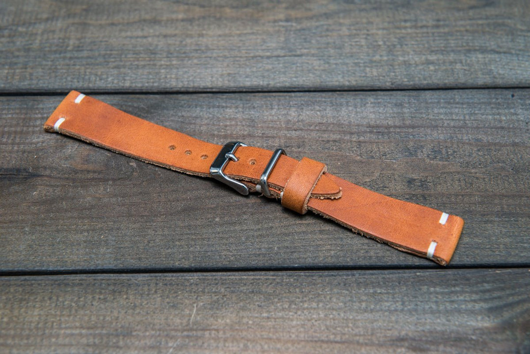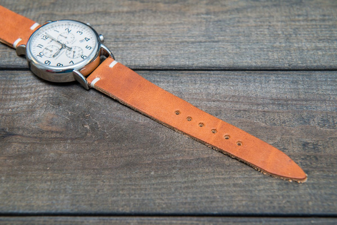 English Tan leather watch band, handmade in Finland. Tapered size: 26/22mm, 25/22 mm, 24/20mm, 23/20 mm, 22/18 mm, 21/18 mm, 20/16 mm, 19/16 mm