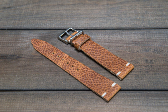 Buckaroo Tan leather watch band, handmade in Finland. Tapered size: 26/22mm, 25/22 mm, 24/20mm, 23/20 mm, 22/18 mm, 21/18 mm, 20/16 mm, 19/16 mm