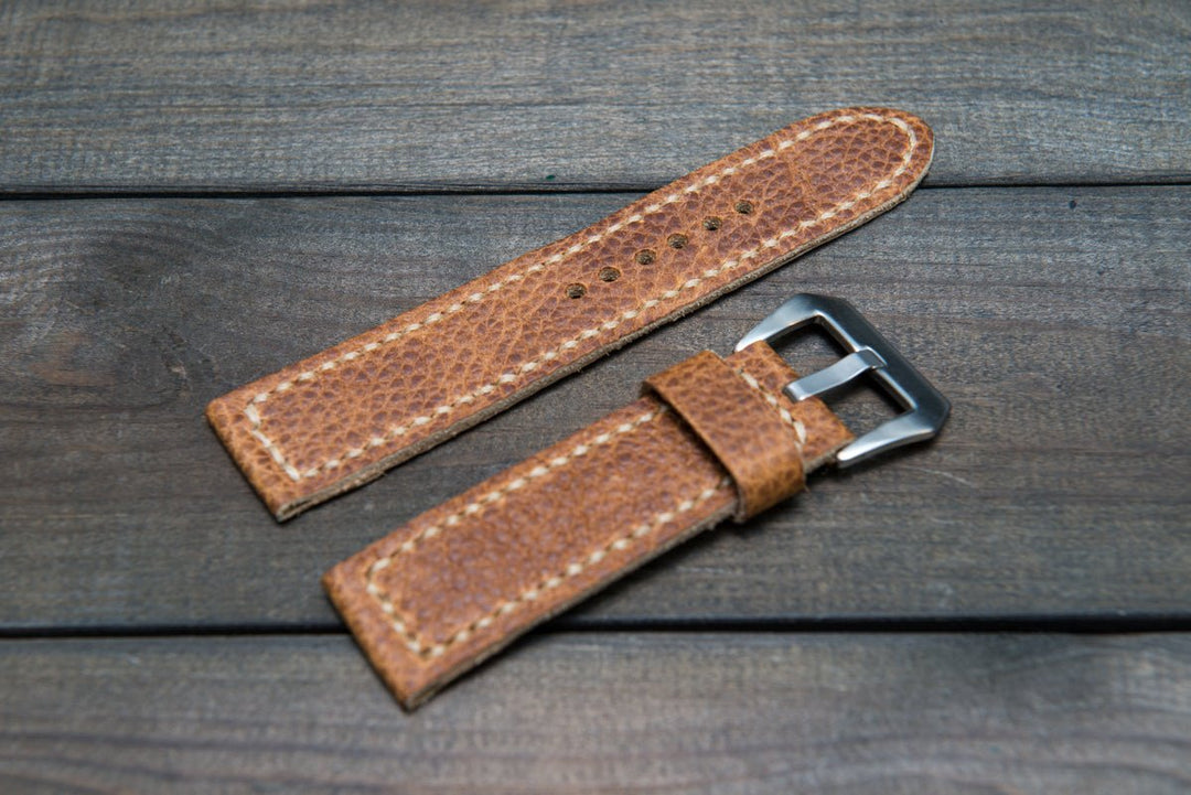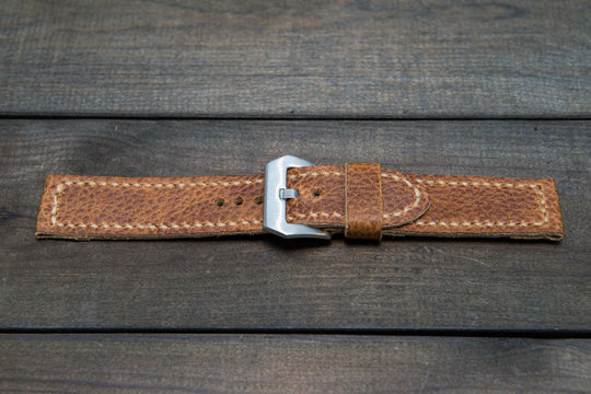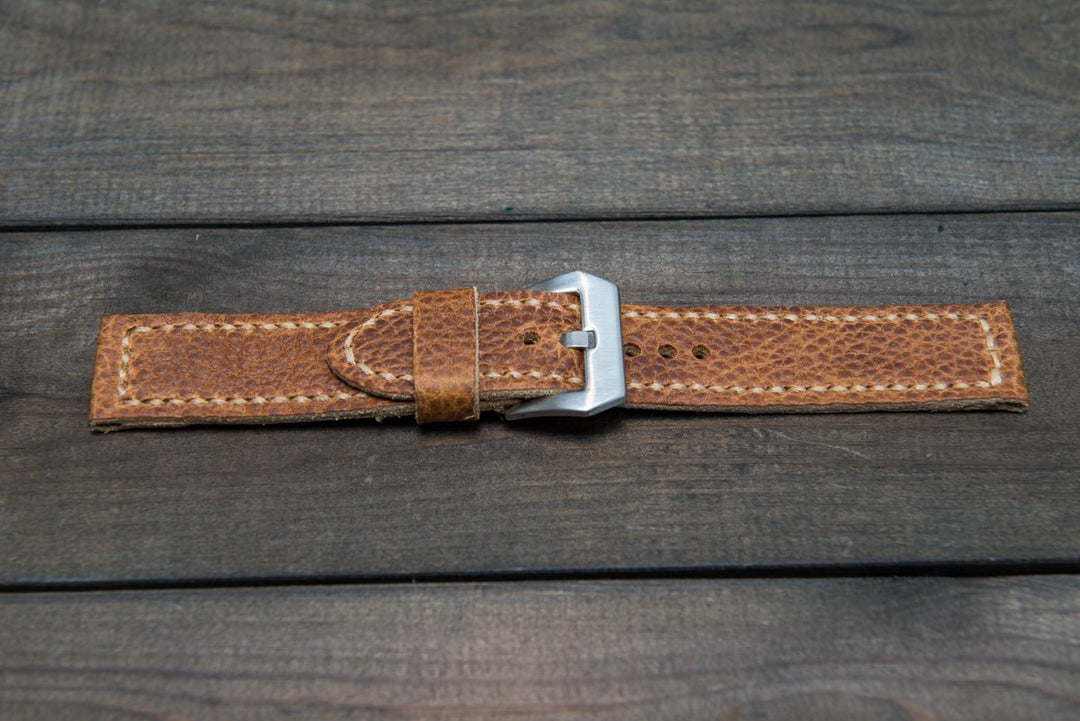 Buckaroo Tan leather watch strap, hand stitched, handmade in Finland - 18mm, 19 mm, 20mm, 21 mm, 22mm, 23 mm, 24mm, 25 mm, 26 mm.