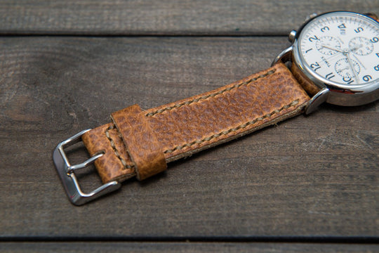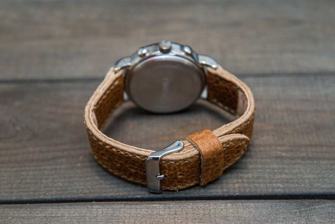 Buckaroo Tan leather watch strap, hand stitched, handmade in Finland - 18mm, 19 mm, 20mm, 21 mm, 22mm, 23 mm, 24mm, 25 mm, 26 mm.