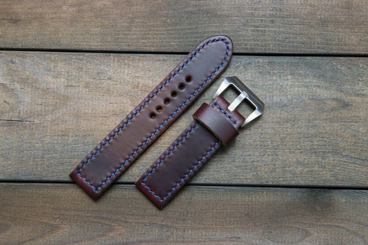 Handmade watch strap made with beautiful Horween Burgundy / Chromexcel no.8 leather.