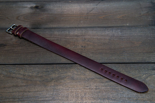 One-piece watch band, Horween Burgundy/ Chromexcel no 8. leather watch strap