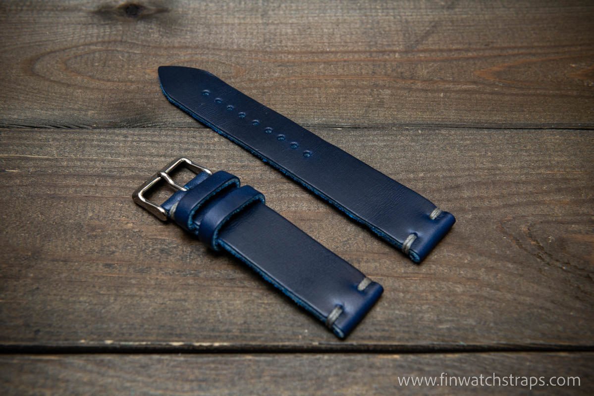 Deep Sea Horween Cavalier leather watch band, handmade in Finland. Tapered size: 26/22mm, 25/22 mm, 24/20mm, 23/20 mm, 22/18 mm, 21/18 mm, 20/16 mm, 19/16 mm
