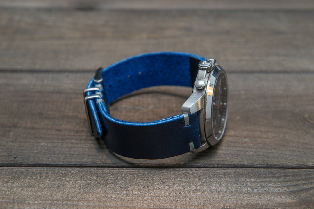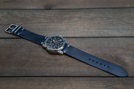 Deep Sea Horween Cavalier leather watch strap (ink-blue), handmade in Finland - 16mm, 17 mm, 18mm, 19 mm, 20mm, 21 mm, 22mm, 23 mm, 24mm, 25 mm, 26 mm.