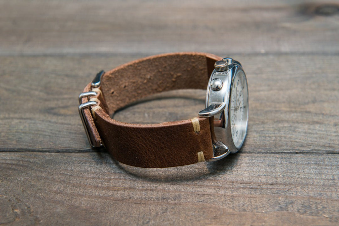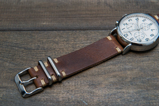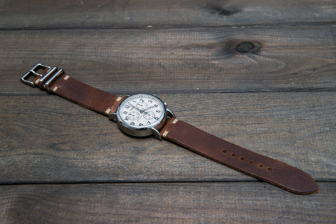 Derby Nut Brown leather watch strap, handmade in Finland - 16mm, 17 mm, 18mm, 19mm, 20mm, 21 mm, 22mm, 23 mm, 24mm.