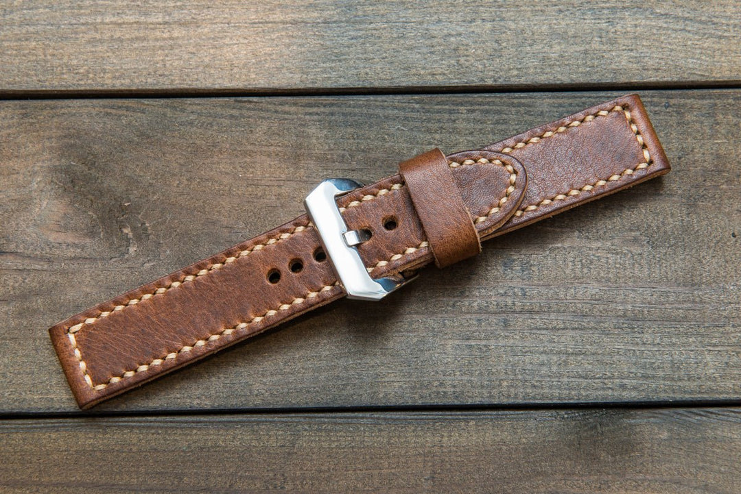 Leather watch band, Horween Derby Nut Brown leather watch strap, hand stitched, handmade in Finland - 18mm, 19 mm, 20mm, 21 mm, 22mm, 23 mm, 24mm, 25 mm, 26 mm.