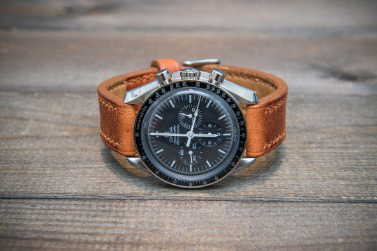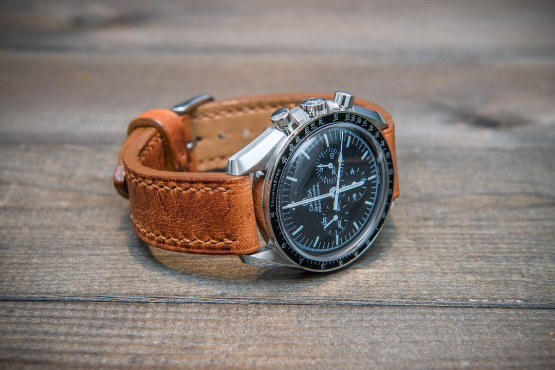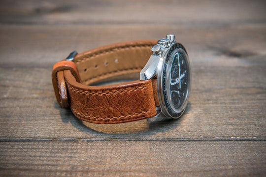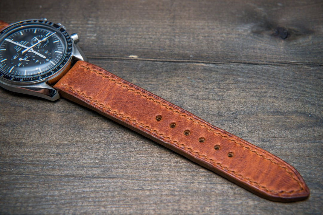 Dublin Cognac Horween Leather watch band. Hand-stitched with french lin. Made to order in Finland.