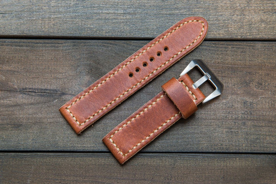 Watch band, Dublin Cognac leather watch strap, handmade in Finland - 18mm, 19 mm, 20mm, 21 mm, 22mm, 23 mm, 24mm, 25 mm, 26 mm.