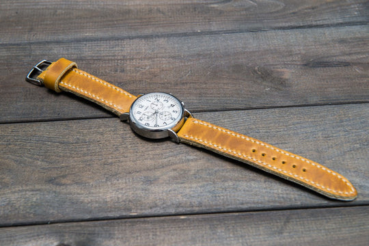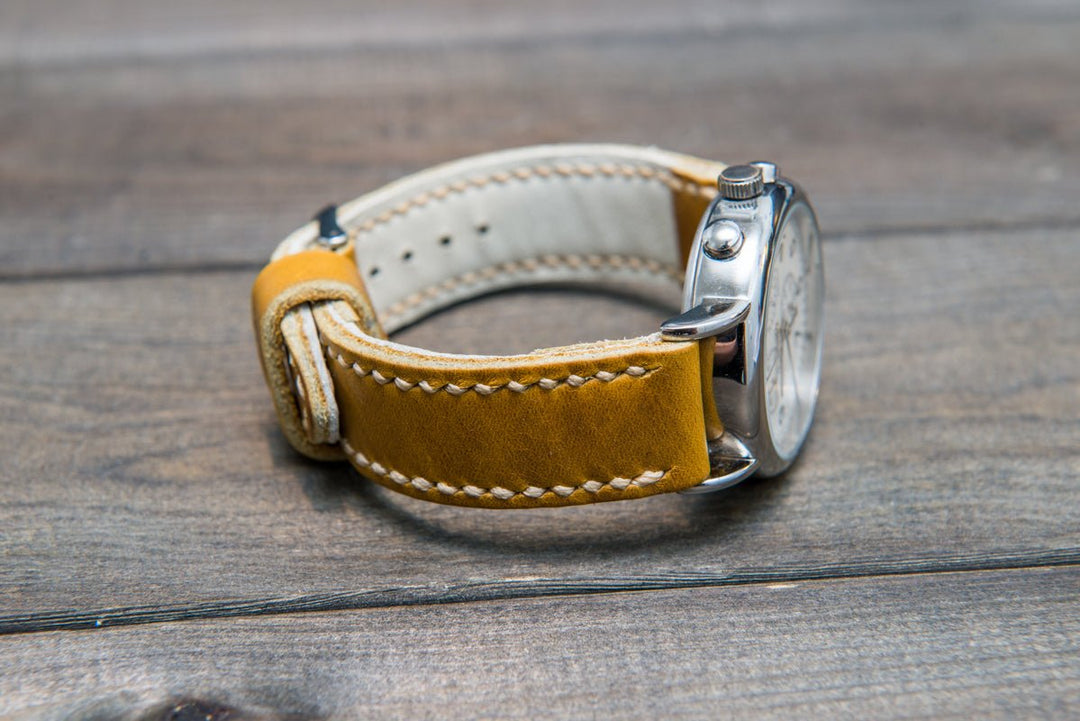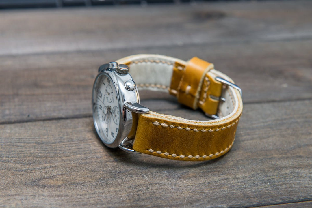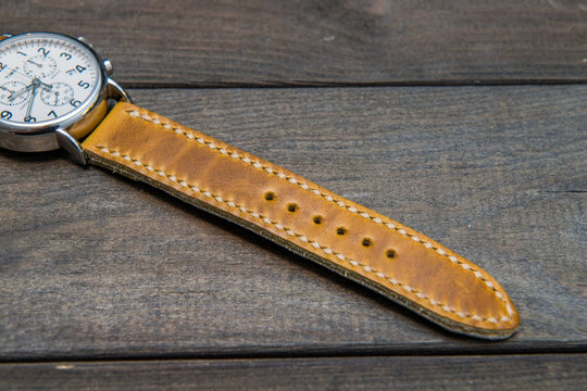 SunGold Cavalier leather watch strap, hand stitched, handmade in Finland - 18mm, 19 mm, 20mm, 21 mm, 22mm, 23 mm, 24mm, 25 mm, 26 mm.