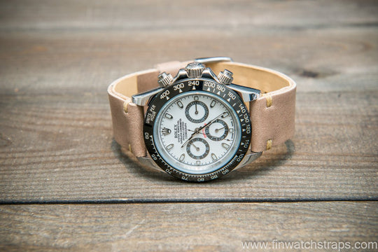Buttero leather watch strap (beige), handmade in Finland, 10-26 mm