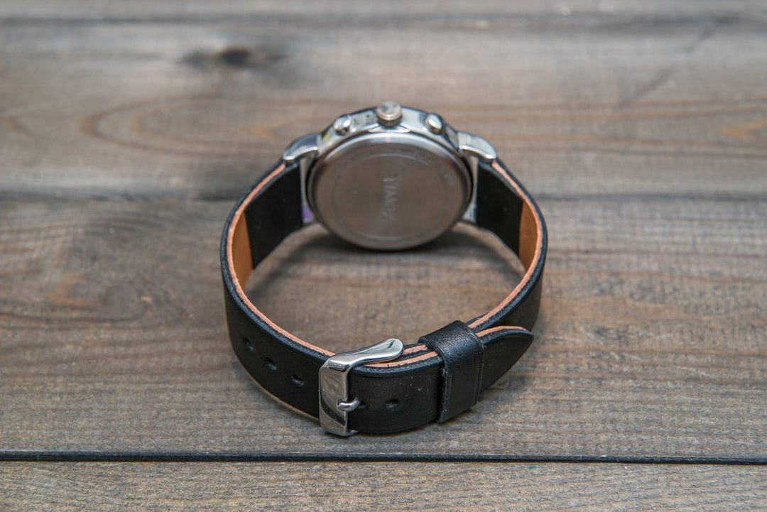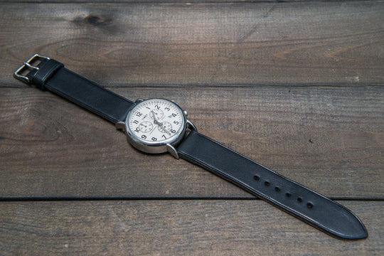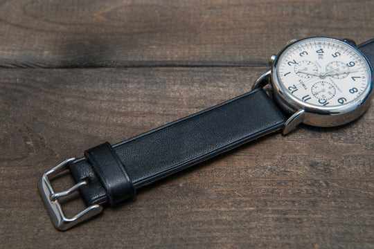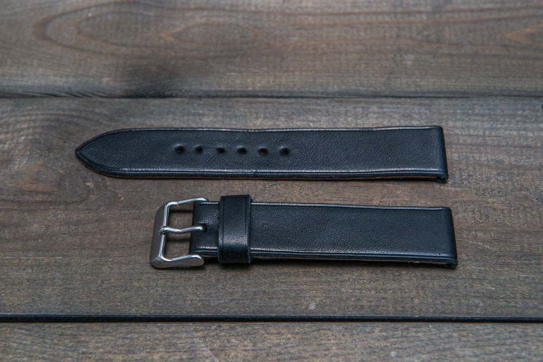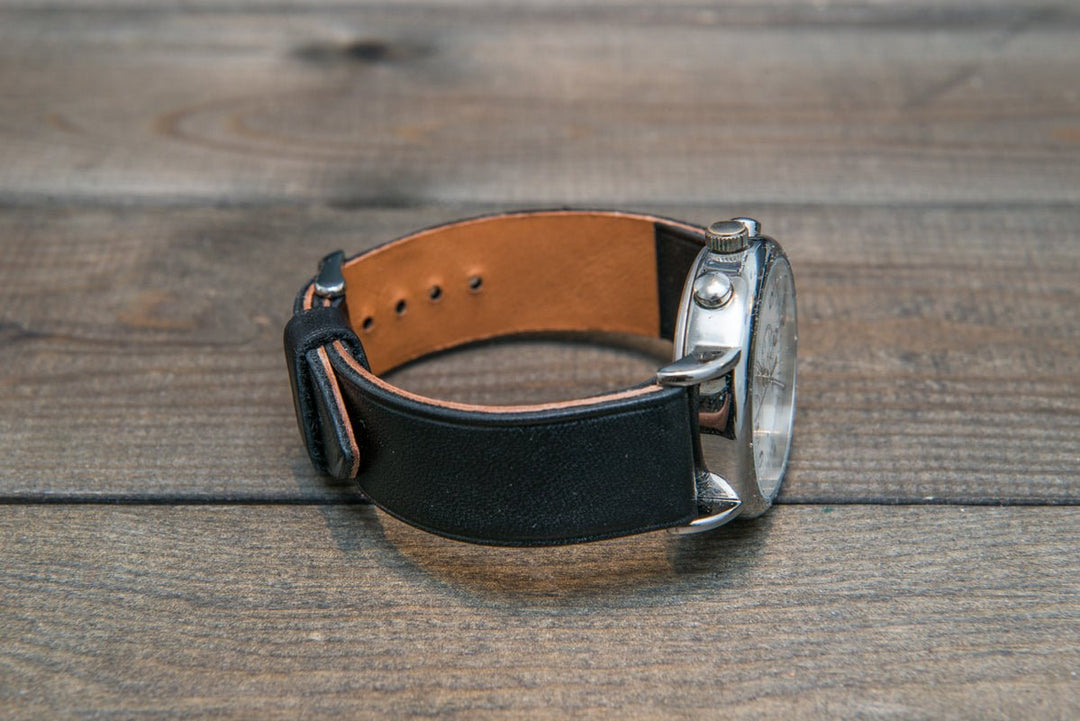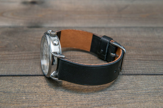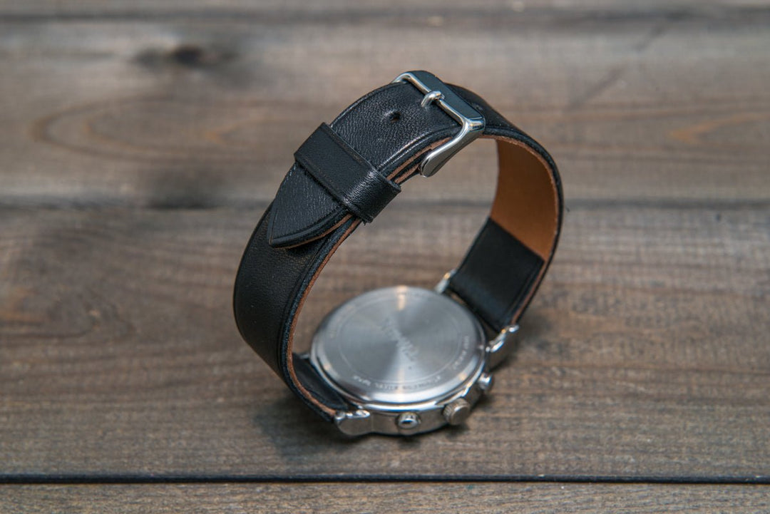Buttero leather watch strap (black), handmade in Finland - 10 mm, 12 mm, 14 mm, 16mm, 17 mm, 18mm, 19 mm, 20mm, 21mm, 22mm, 23 mm, 24mm, 25 mm, 26 mm.
