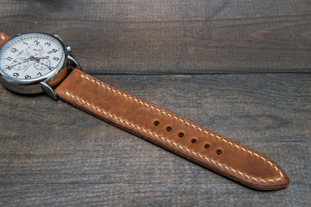 Italian Buttero leather watch band, vintage leather watch strap. Color: English Saddle.