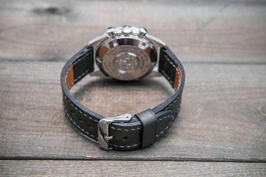 Italian Buttero leather watch band, vintage leather watch strap. Color Grey.