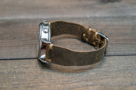 Military Olive leather watch strap, Handmade in Finland. The sample is stitched with Olive thread color. Feel free to customize it with the best matching watch thread color.