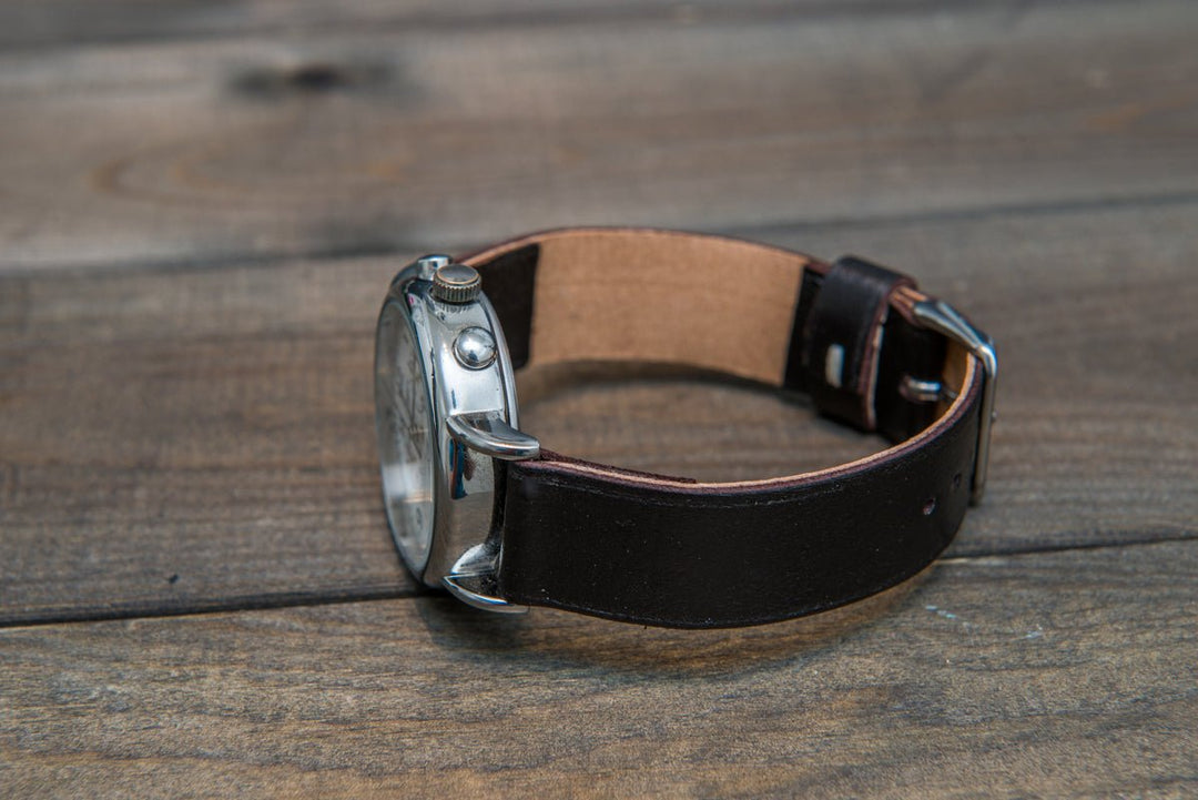 Handmade watch strap made with beautiful and durable kangaroo vegetable tanned leather from Tuscany, Italy. We cooperate with the finest tanneries in Italy and guarantee authentic leather quality. The strap lining is made of calfskin leather. Water-resistant calfskin leather for lining is also available, please, mention in comments if you prefer the water-resistant lining for the watch band. The leather is durable and will age getting a unique patina.
