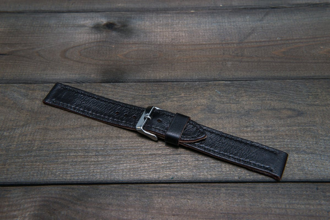 Handmade watch strap made with beautiful and durable kangaroo vegetable tanned leather from Tuscany, Italy. We cooperate with the finest tanneries in Italy and guarantee authentic leather quality. The strap lining is made of calfskin leather. Water-resistant calfskin leather for lining is also available, please, mention in comments if you prefer the water-resistant lining for the watch band. The leather is durable and will age getting a unique patina.