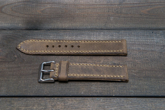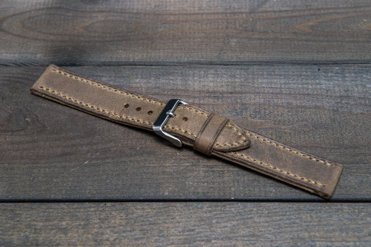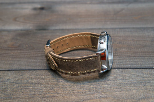 Military Olive leather watch strap, hand stitched with French lin waxed thread, which adds durability and style to the watch band premium look. Watch band edges can be dyed on request with different colors.