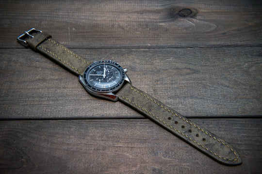 Italian leather watch band, vintage leather watch strap. Tannery: Mora Attilio, Italy.