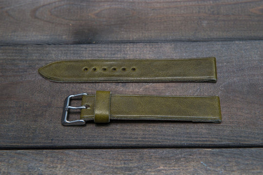 Italian Buttero leather watch band, vintage leather watch strap. Color: Verdone, olive green.