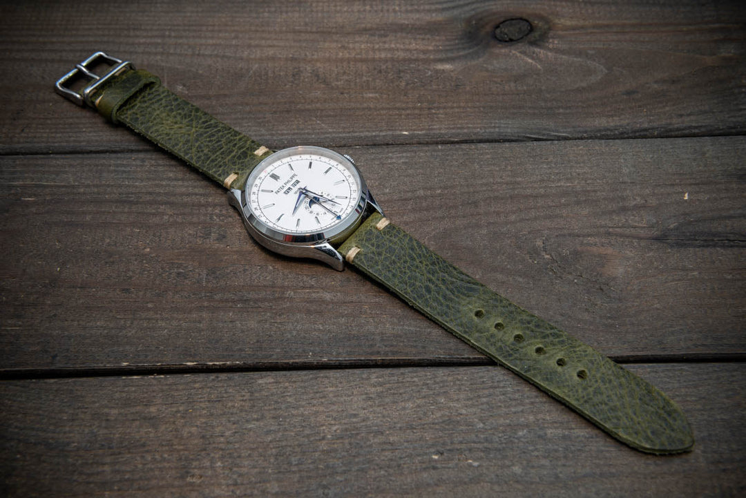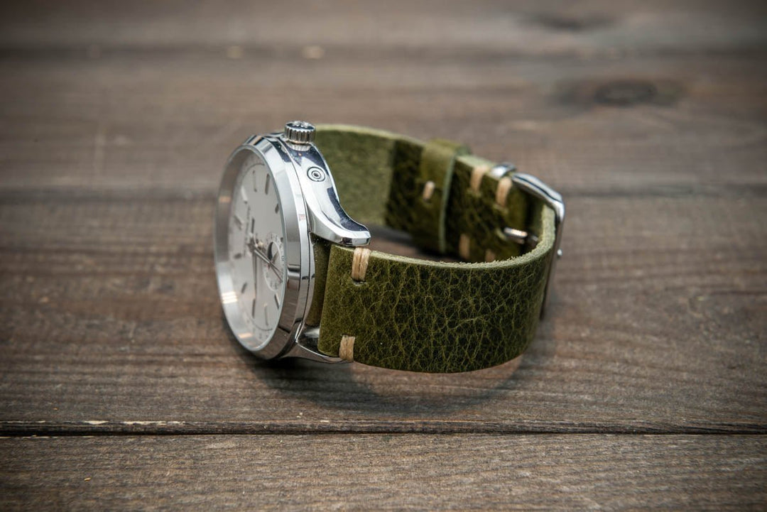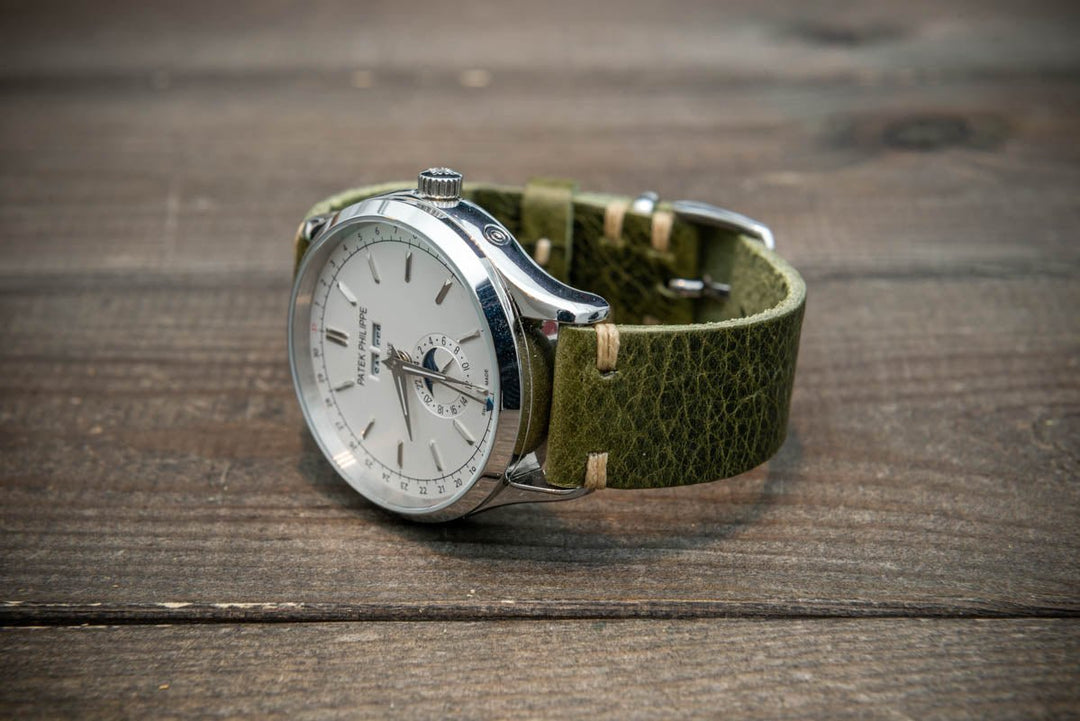 Badalassi Oliva Wax leather watch strap. Hand-made to order in Finland. 10-26 mm.