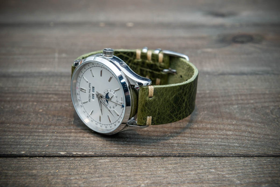 Badalassi Oliva Wax leather watch strap. Hand-made to order in Finland. 16-24 mm.