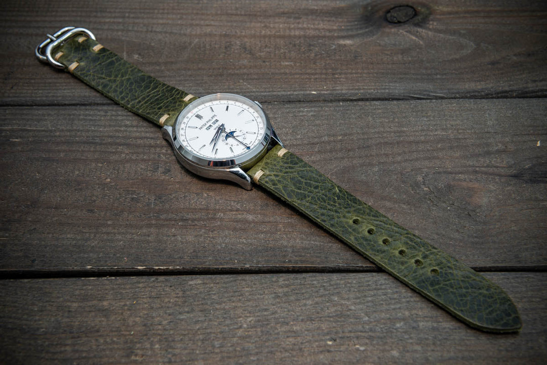 Badalassi Oliva Wax leather watch strap. Hand-made to order in Finland. 16-24 mm.