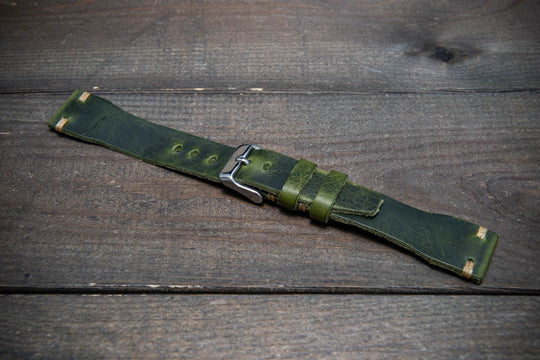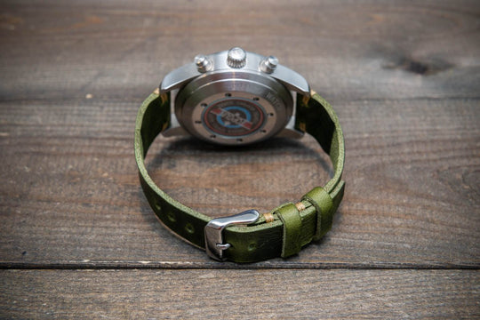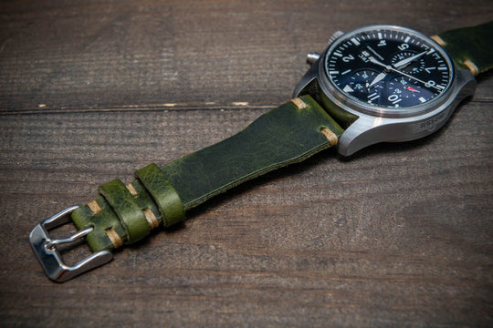 Pilot model watch band. Aviator military style Badalassi Carlo (Italy) Leather Watch Band. Olive colour.