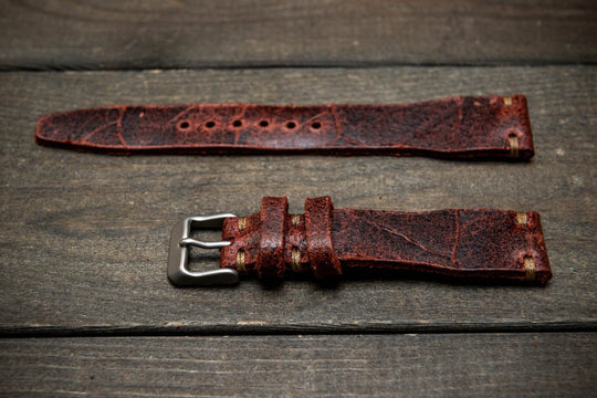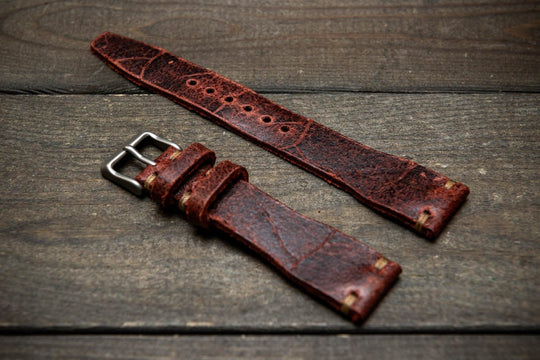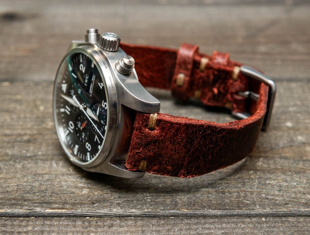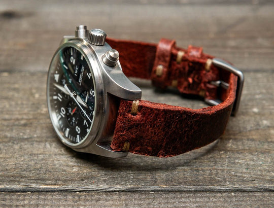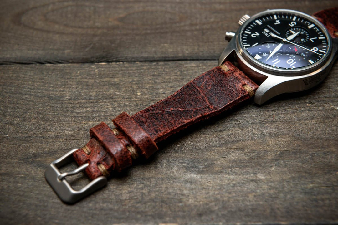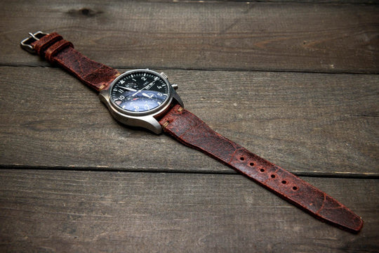 Pilot Leather Watch Strap, Aviator model, Military style tapered model