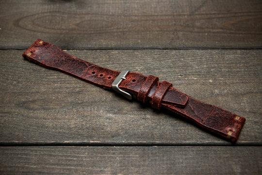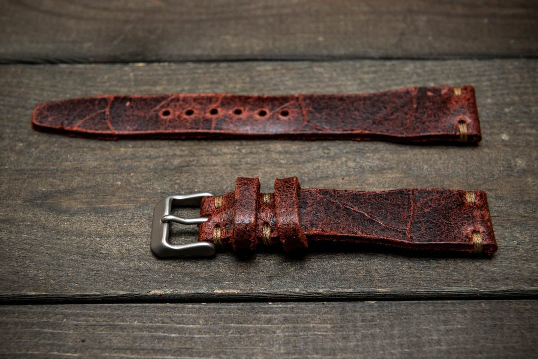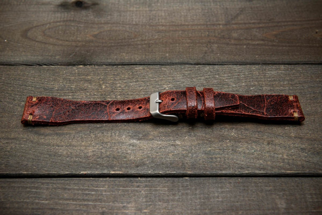Crazy Cow (F. Stead tannery) leather watch strap, Handmade in Finland. The sample is stitched with Olive thread color. Feel free to customize it with the best matching watch thread color.