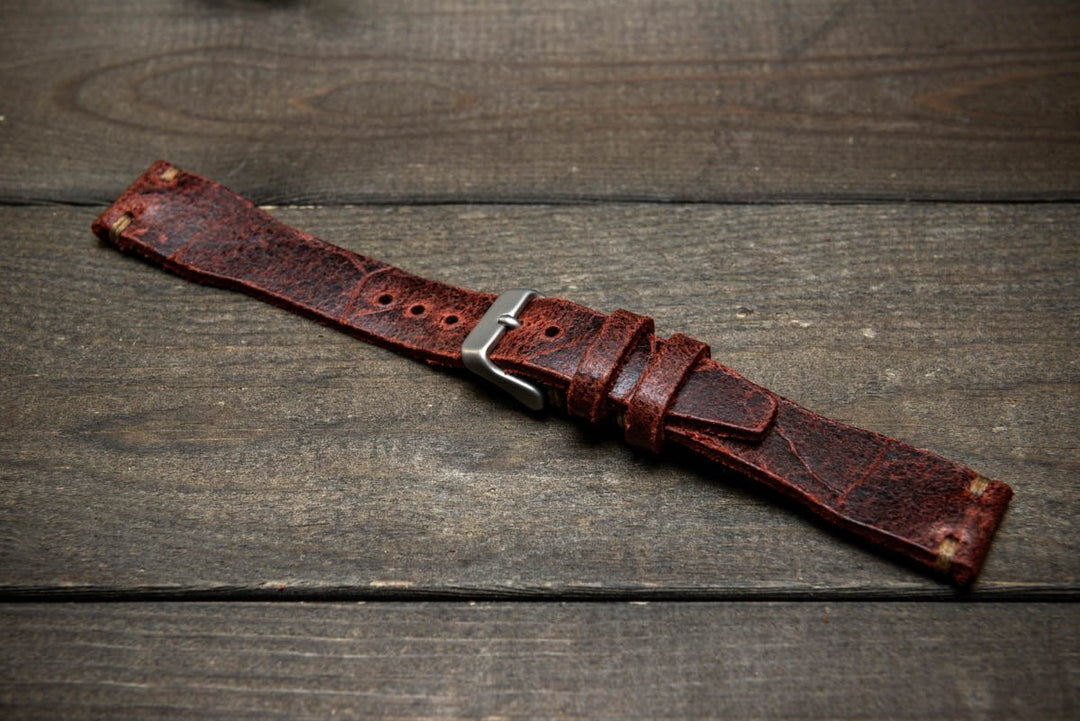 Each strap is handcrafted and custom made to order. Please, measure carefully watch lugs and your wrist before placing your order. Contact us prior to order placing if needed. Once product is cut, we do not accept changes anymore. We do not accept returns and exchanges for custom made products. Thank you for understanding. Please, note, each product is unique and might slightly differ from the listed image (leather color, leather structure, etc). For product customization, check drop-down options below or contact us via email